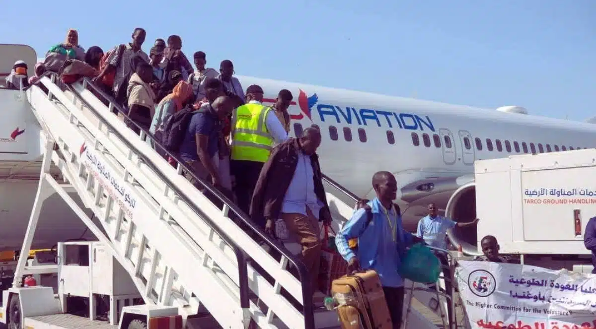 وصول الفوج الثاني من العائدين السودانيين من أوغندا إلى مطار بورتسودان