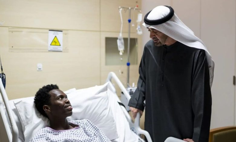 قام رئيس دولة الإمارات بزيارة عدد من المصابين الذين يتلقون العلاج في أحد المستشفيات الحكومية، بينهم مواطن سوداني أصيب جراء الهجوم الإيراني الأخير الذي استهدف أراضي الدولة.