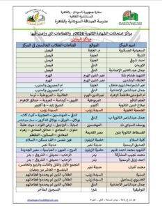 أعلنت مدرسة الصداقة السودانية بالقاهرة عن نشر القوائم والصور الخاصة بتوزيع مراكز امتحانات الشهادة الثانوية السودانية لعام 2026 في جمهورية مصر العربية.