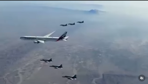 أفادت تقارير إعلامية وميدانية اليوم الخميس 9 أبريل 2026م، برصد طائرات مقاتلة تابعة للقوات الجوية الباكستانية وهي تقوم بمرافقة وتأمين الوفد الإيراني الرفيع الذي يزور باكستان حالياً. وتأتي هذه الخطوة البروتوكولية والأمنية العالية في إطار مراسم الاستقبال الرسمية، وتعبيراً عن مستوى التنسيق الأمني الرفيع بين طهران وإسلام آباد في ظل الظروف الإقليمية الراهنة التي تشهد توترات